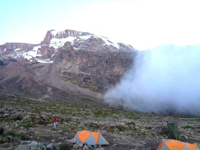The morning hike is a steady ascent up to the Second Cave Camp located in the moorland zone with superb views of Kibo and the Eastern ice fields on the crater rim.